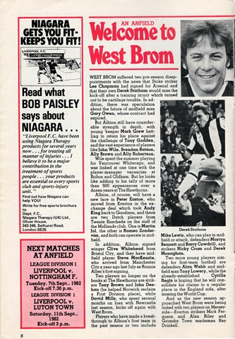 Liverpool v West Bromwich Albion, League Division 1, Saturday 28th August 1982, Anfield