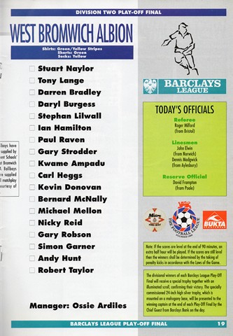 Port Vale v West Bromwich Albion, Barclays League Division Two Play-Off Final, Wembley Stadium, Sunday 30th May 1993