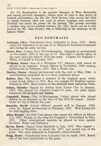 Port Vale v West Bromwich Albion, Official opening of Vale Park's floodlights, Wednesday 24th September 1958