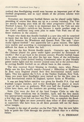 Port Vale v West Bromwich Albion, Official opening of Vale Park's floodlights, Wednesday 24th September 1958